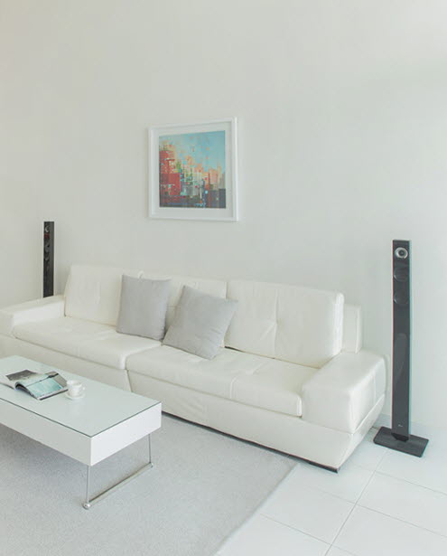 높고 넓은 창으로 한쪽벽을 대신합니다.