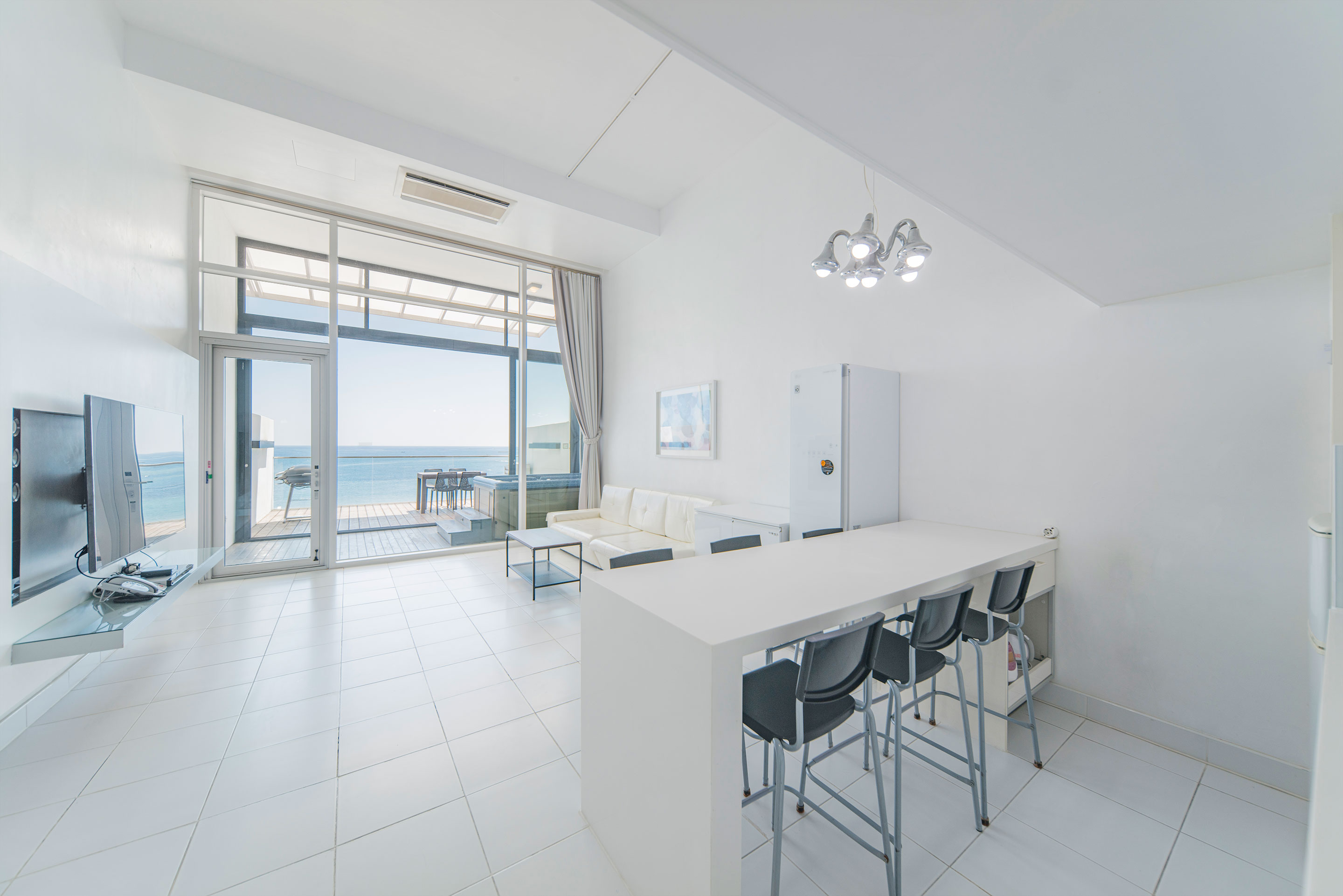 유리창 역시 공간의 동선에 맞추어 실내 어디에서든 바다를 바라볼 수 있도록
