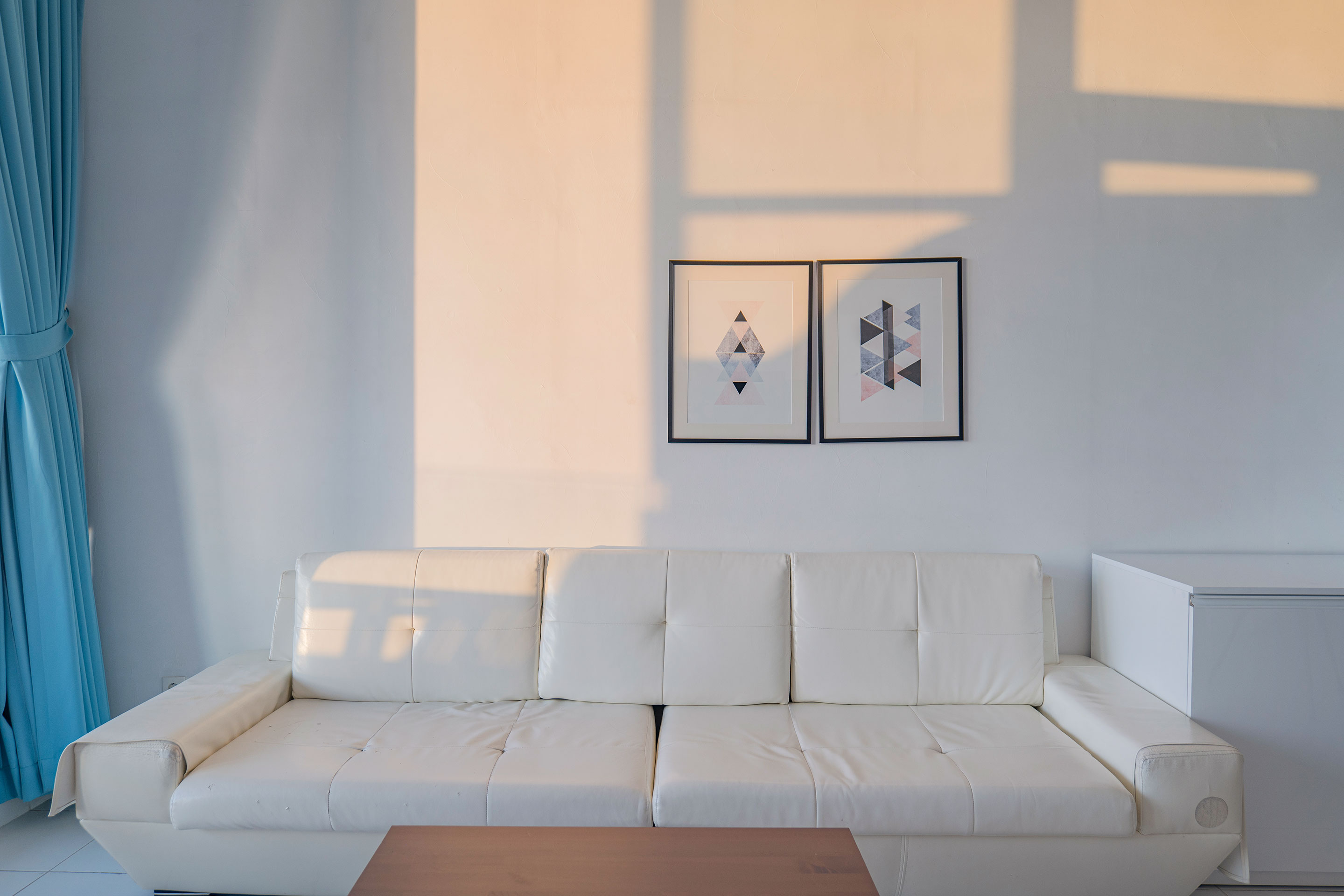높고 넓은 창으로 한쪽벽을 대신합니다.